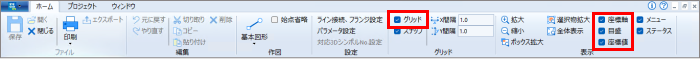 [表示]メニューからも表示/非表示やグリッドにスナップなどは設定できます。