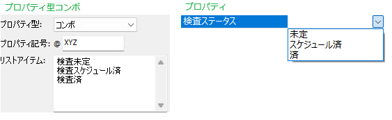 コンボタイプを選択した場合、リストアイテムを入力します。リストアイテムは、コンボタイプのプロパティでドロップダウンの選択肢として現れます。
