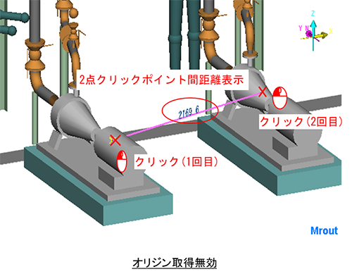 通常、モデルクリックしたポイント間の距離が表示されますが、「オリジンの取得」が有効であればモデルオリジン間距離を表示します。