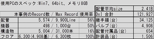 | 5. | 配管 | 9,900 | ライン | 始点→終点を1ラインとします="JPIPEL"の最大レコードに対応 |