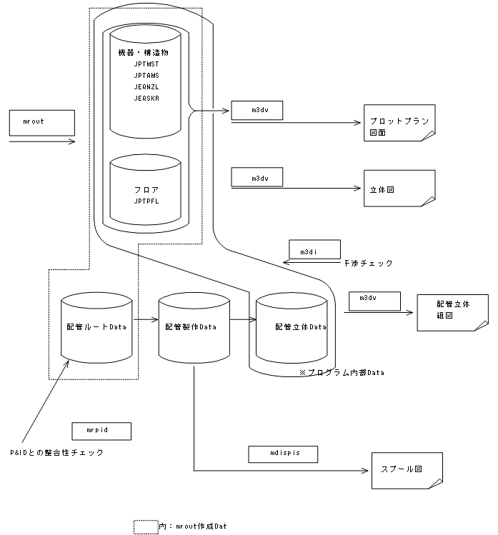本システムは、機器、構造物配置計画、配管計画をグラフィックディスプレイ対話方式で行い、3次元プラントモデルDataを作成するものです。