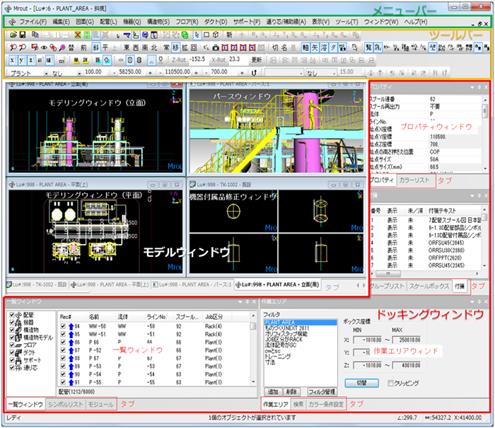 | モデル | 配管、機器、構造物、構造物モデル、サポート、フロア、ダクト、通り芯の総称。 |