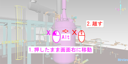 | 視線の移動 | ミドルボタンで上下左右にドラッグ | Alt+マウスを上下左右にドラッグ | |