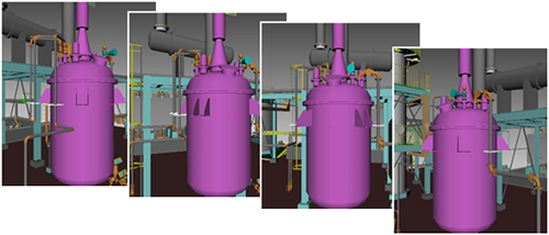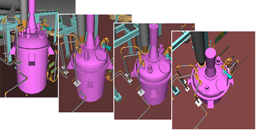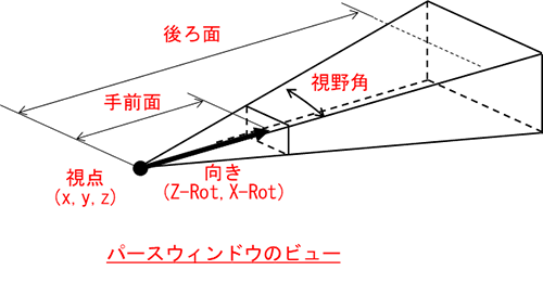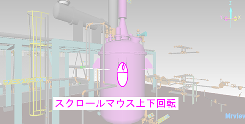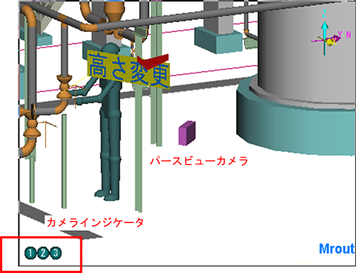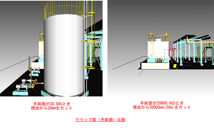 パースウィンドウでは現在の視点と参照点(見る方向)を設定することでプラント内部に入ることができます。