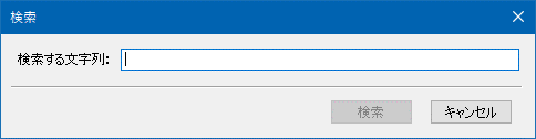検索ダイアログが現れます。検索する文字列を入力し「検索」で該当する文字列が見つかればその行までスクロールし、ダイアログは閉じます。続けて同じ文字列を検索する場合はF3キーもしくは「次を検索」を押します。