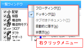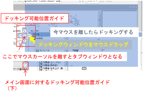 ドッキングウィンドウはモデル情報を画面の上下左右に常時表示(ドッキング)非表示が可能です。