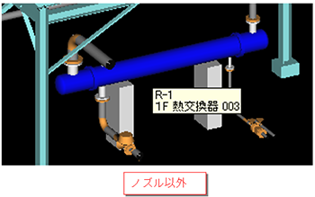 | コンポーネント | 各オブジェクトを構成している要素。配管エッジ、配管ポイント、機器シンボル等。通り芯、構造物にコンポーネントは有りません。基本的にコンポーネントの複数選択は出来ません。(除く:配管ポイント) |