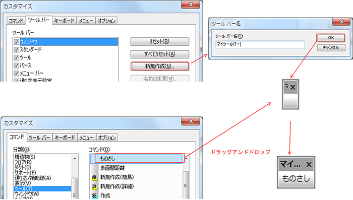 ツールバーやメニューはモデルウィンドウ種類ごとに保存されます。