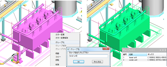 グループ名を入力してOKでモデルがグループ化されグループカラーとなります。