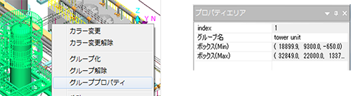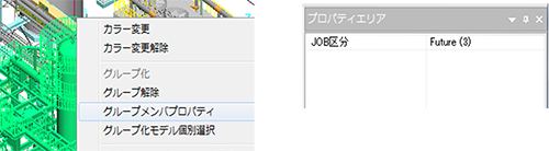 グループのプロパティが表示されるので、"編集"メニューの"グループ化モデル個別選択"を選びます。