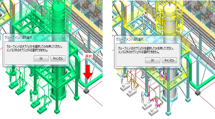 グループ化したモデルを選択すると、同一モデルの全てのモデルが選択状態となります。