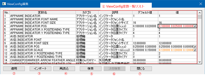 「表示」メニューの「ViewConfig編集」で以下のViewConfig編集ダイアログが現れます。