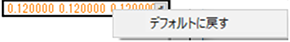 値の列でセルをマウス右クリックすると"デフォルトに戻す"メニューが現れ値をデフォルト値に戻すことができます。