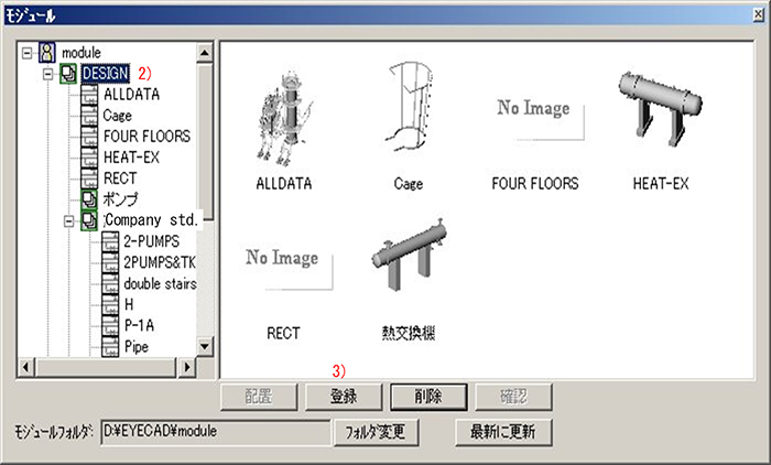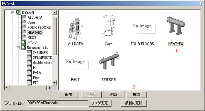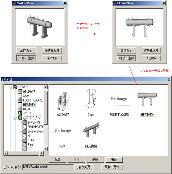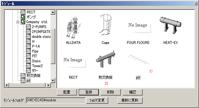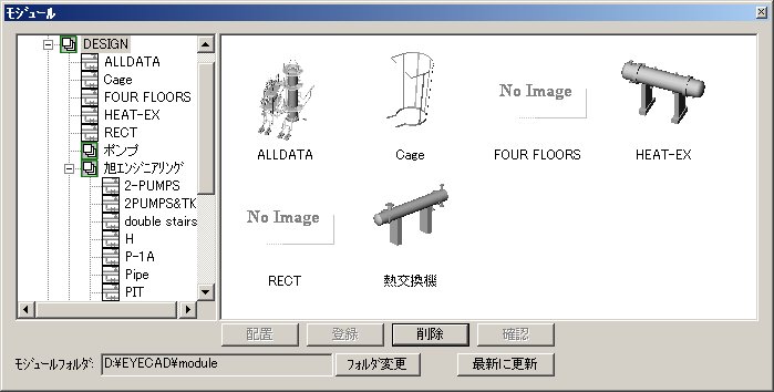 | 登録機能 | 機器、配管、フロア等をモジュールとして登録する |