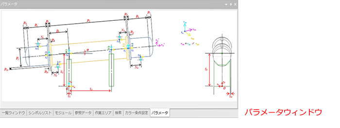 - リストを選択するとそのパラメータとデフォルト値が右の一覧にリスト表示されます。またパラメータウィンドウには選択したパラメトリックモジュールの寸法図が表示されます。