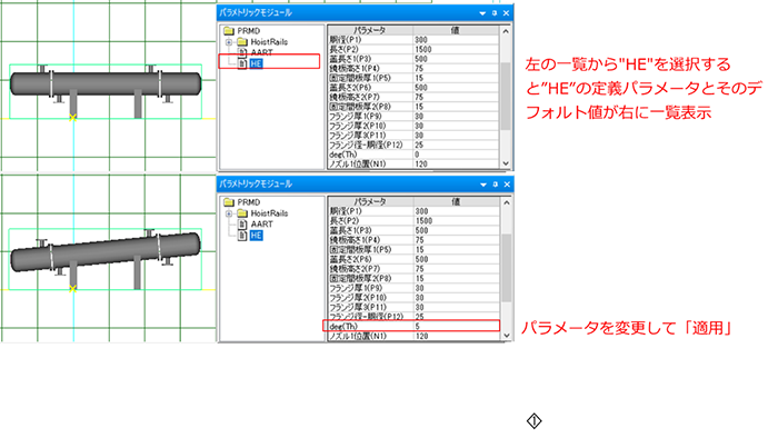 パラメトリックモジュールは機器、構造物のモデルをパラメータ変更可能なモデルとして定義することができます。
