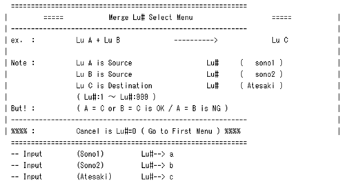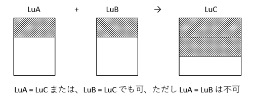 LuAとLuBをLuCに統合します。(A=CまたはB=Cでも可能、ただしA=Bは不可能)。また、統合と同時に統合するDataの位置の移動を行うことが可能です。