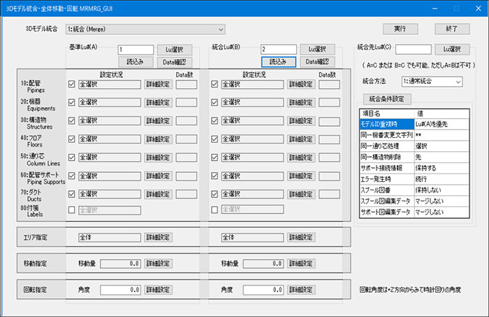 LuAとLuBをLuCに統合します。(A=CまたはB=Cでも可能、ただしA=Bは不可能)。また、統合と同時に統合するDataの位置の移動と、回転を行うことが可能です。