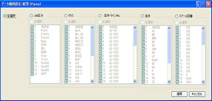 対象となるDataは、フロア、機器、構造物、配管、配管サポート、通り芯、補助線です。
