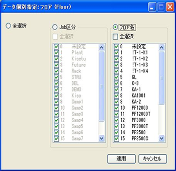 - 現在対象となるDataは、機器、構造物、フロア、通り芯です。