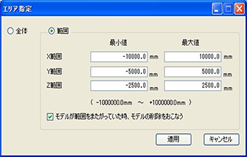 メニューの選択、条件の入力など、ほぼ全てがマウスのみで操作可能です。 プログラム内部では、mrmrg.exeを利用しており、ユーザとプログラム間のつなぎの役割を担っています。 →「3DモデルData併合 メイン画面」を参照 |
