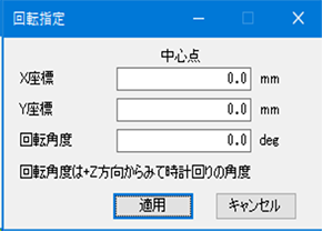 回転する場合の指定方法は、回転中心の指定、回転角の指定を参照