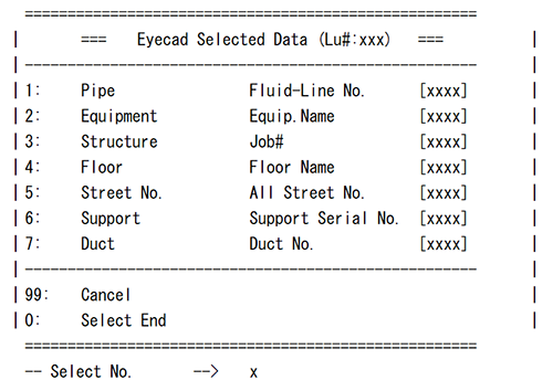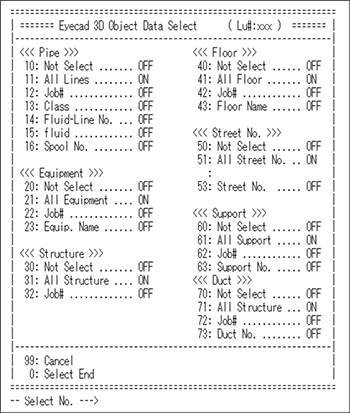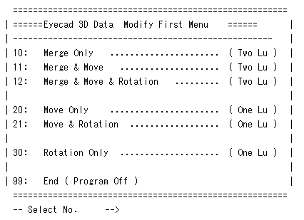 従来のシステムです。メニューの選択、条件の入力など全てキーボード入力です。 →「3DモデルData併合」を参照 |