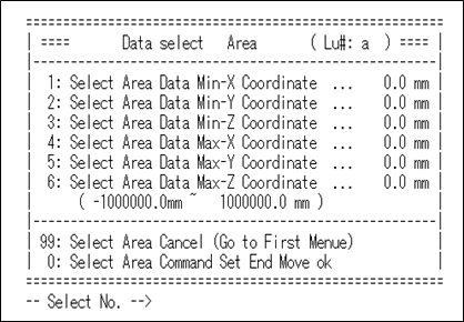 『初期メニュー』処理選択機能=11(Merge & Move)の場合は、エリア指定した後に統合するLu#毎に統合するDataの移動を指定します。