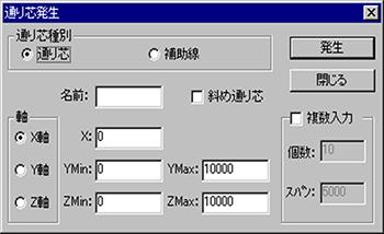 【通り芯発生】Dialogが表示されるので、通り芯、または補助線をラジオボタンで選択します。