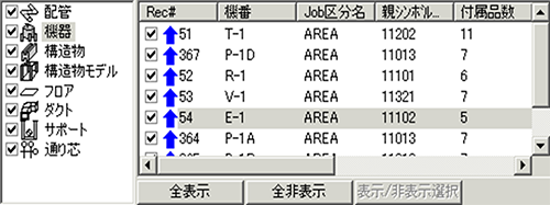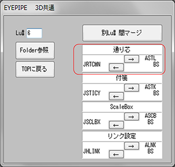 下の例は、機器のリストを通り芯リストに切り替え、1通りを選んだところです。(結果は上図と同じ)