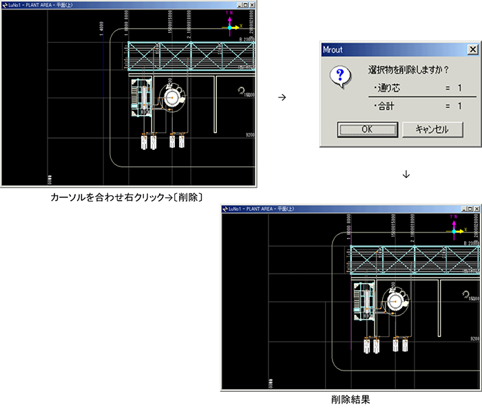 削除はマウスの右ボタンでポップアップメニュー呼出しか、メニューの呼出しにて開始します。