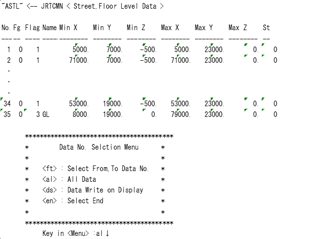 JRTCMNから作ったText File“ASTL”を“ASTLBS”へCopyし、通り芯・フロアレベルDataの修正・追加を行います。