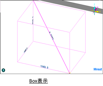 スケールボックスには2点間距離とBOX、円柱表示切替えが可能です。この機能はモデリング画面、パース画面で使用可能です。