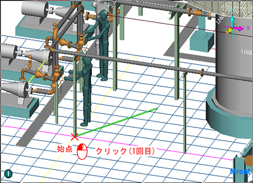 [ものさし測定]モードでは、測定したいモデルの間に「ものさし」を表示する必要があります。