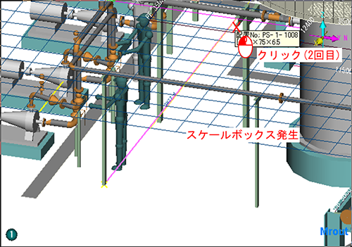 で、2点間距離表示の“スケールBox”が表示されます。 -