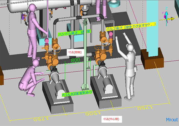 デザインレビューなどで配管の間隔や壁からの距離の確認等にご利用ください。
