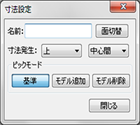 閉じるボタン 寸法設定Dialogを閉じます。 寸法値の表示をFeet-Inch単位にするには、"表示(V)"->"Ft-In設定"により設定が可能です。