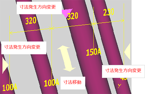 寸法変更ドラッガで、寸法発生方向や位置の変更が可能です。