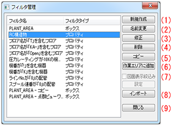フィルタ管理ダイアログ