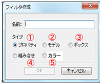 - 新規作成でフィルタ名を入力して"プロパティ"タイプを選択し"OK"