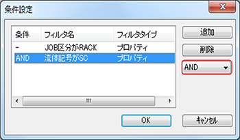 追加条件はAND/ORの指定ができます。