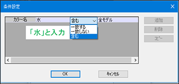 条件設定ダイアログは"属性"の種類(文字列、数値、リスト)により設定方法が異なります。