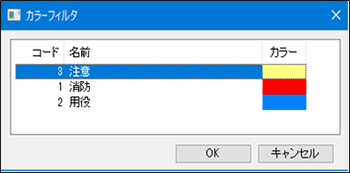 カラーコード一覧を選択すると以下のカラーフィルタダイアログが現れます。
