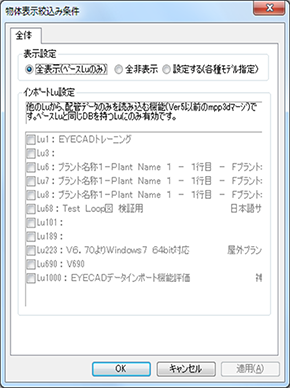 モデル種毎に"全て"、"個別"、"なし"をリストから選択できます。