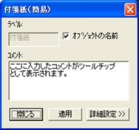 | 12 | チェック済コメント(ANK512文字) | 文字列 | ツールチップ下段(付箋コメントの下)に表示される文字列。 チェック済のとき記入可能です。 |