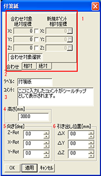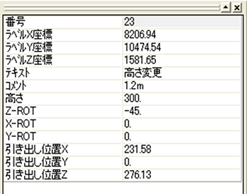 | 16 | 引き出し線ΔZ(mm) | オリジンから付箋までの長さZ成分 |