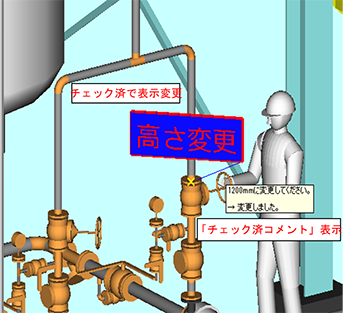 チェックプロパティを「済」とすると「チェック済コメント」の入力が可能です。また付箋に赤枠が付き、赤文字で表示されます。