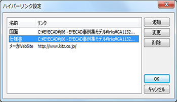 リンク設定ダイアログで変更するリンクを選択して変更ボタンでラベルリンクダイアログが現れます。リンク設定を変更してOKで変更されます。