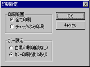 ファイル→印刷設定 メニューを選択すると下のDialog Boxが表示されますので、印刷の条件を設定して下さい。