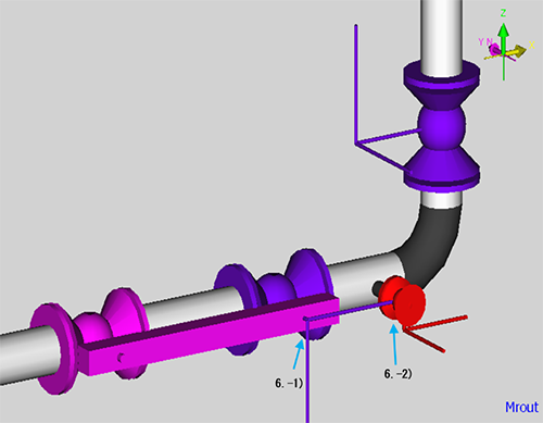 干渉チェックとして、機器とそれにつく配管、母管とそれからの分岐管が干渉チェックにかからないようにこの処理を自動的に行っています。